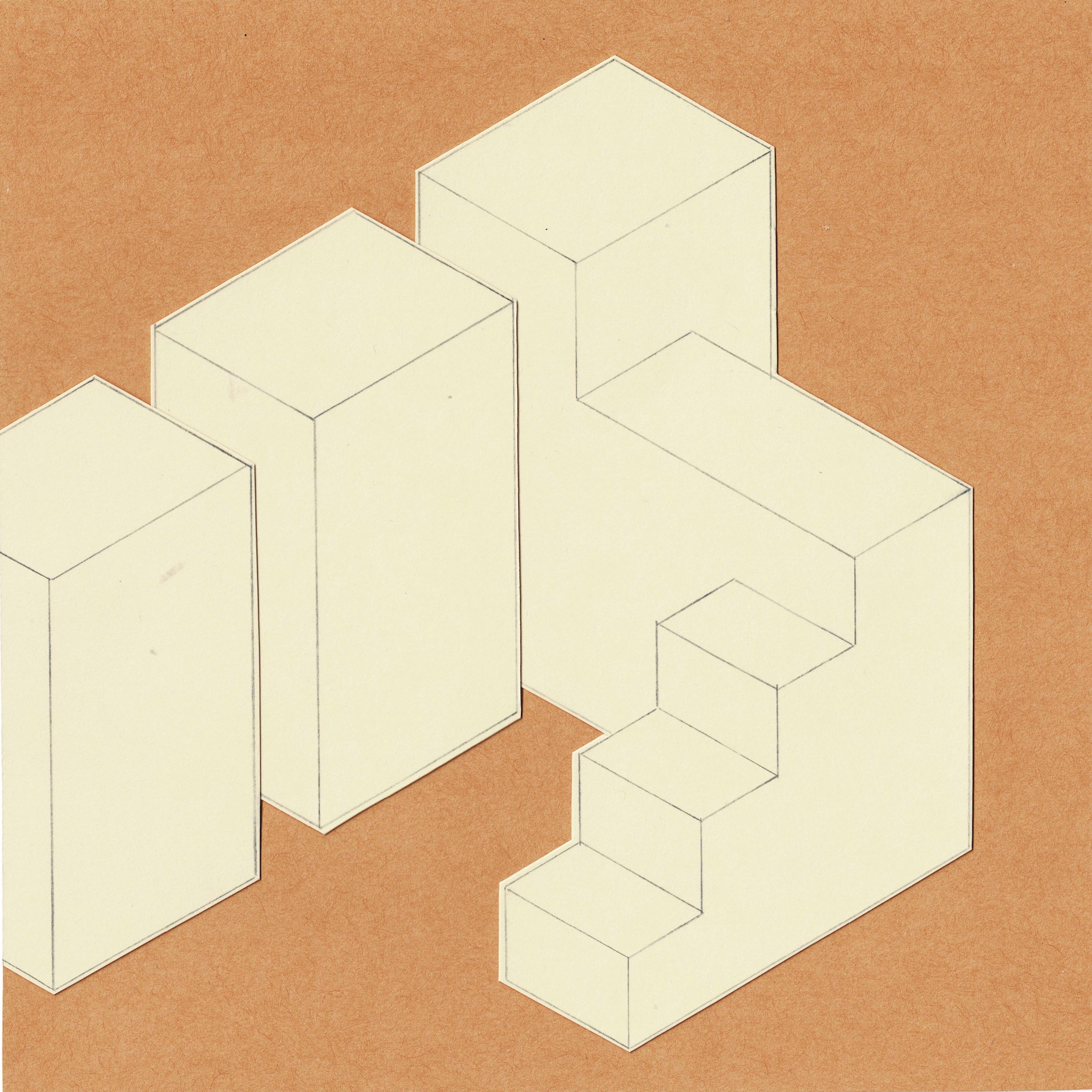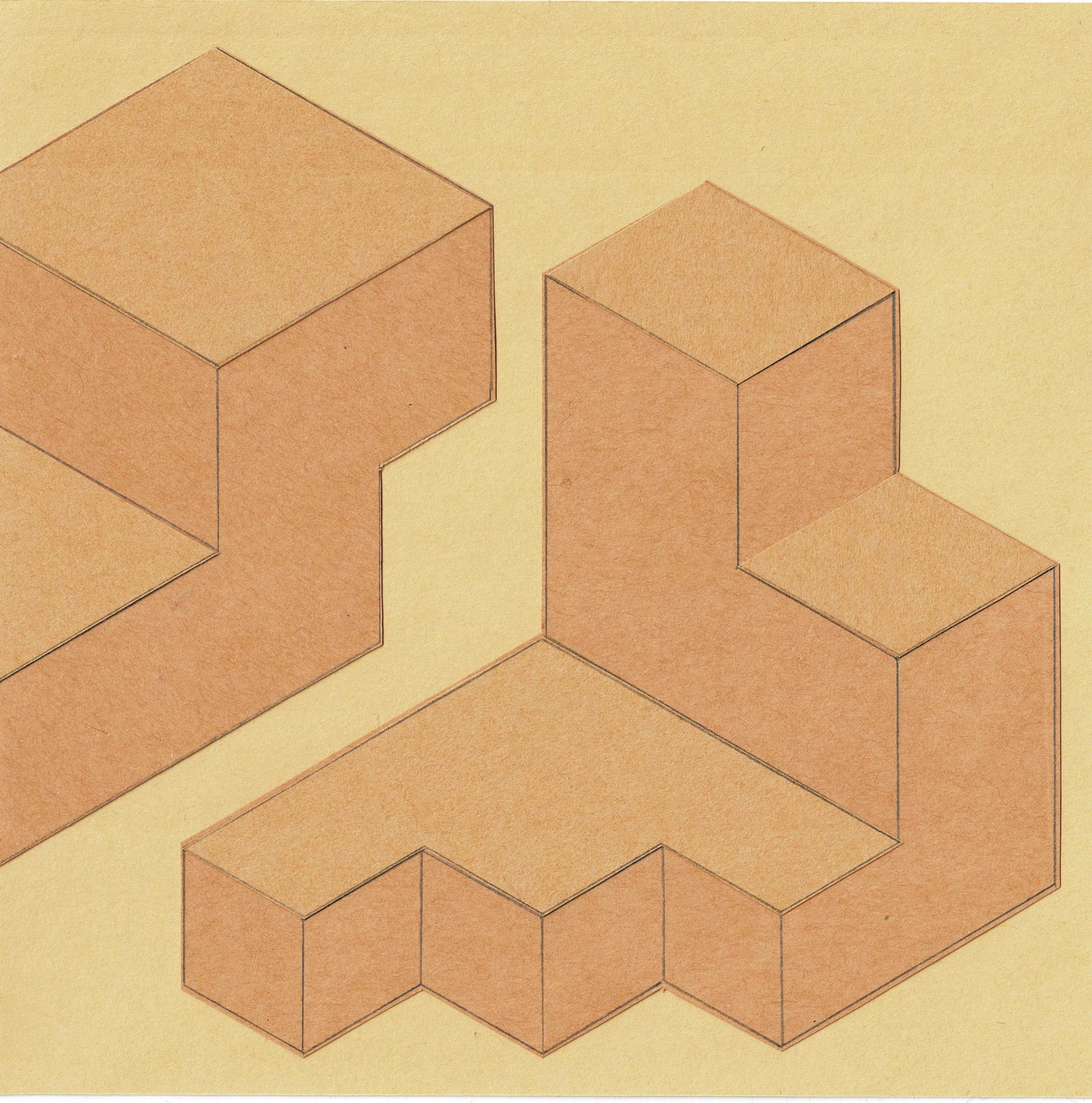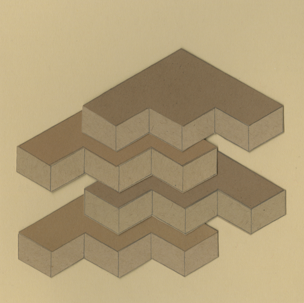 My paper pieces grew out of a practice of play and fascination with the potential to build imaginary spaces solely with line and cut paper. The ‘Head Space’ series specifically captures places I thought up, with the building blocks derived from shapes I accumulated from drawing and everyday life. My works within the concurrent ‘Parking Space’ collection came about through my wondering of what shapes might emerge by placing (or “parking”) drawn shapes into flat space.